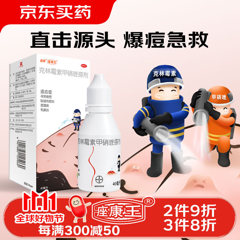 痤康王克林霉素甲硝唑搽剂寻常痤疮专用药消炎祛痘膏粉刺闭口青春痘淡化痘印修复暗疮脂溢性皮炎酒渣鼻毛囊炎