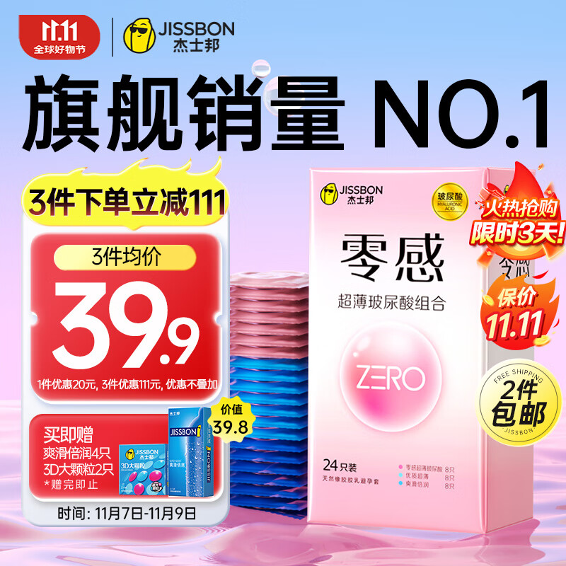 杰士邦玻尿酸超薄避孕套30只 ZERO零感安全套套润滑男女用成人情趣用品
