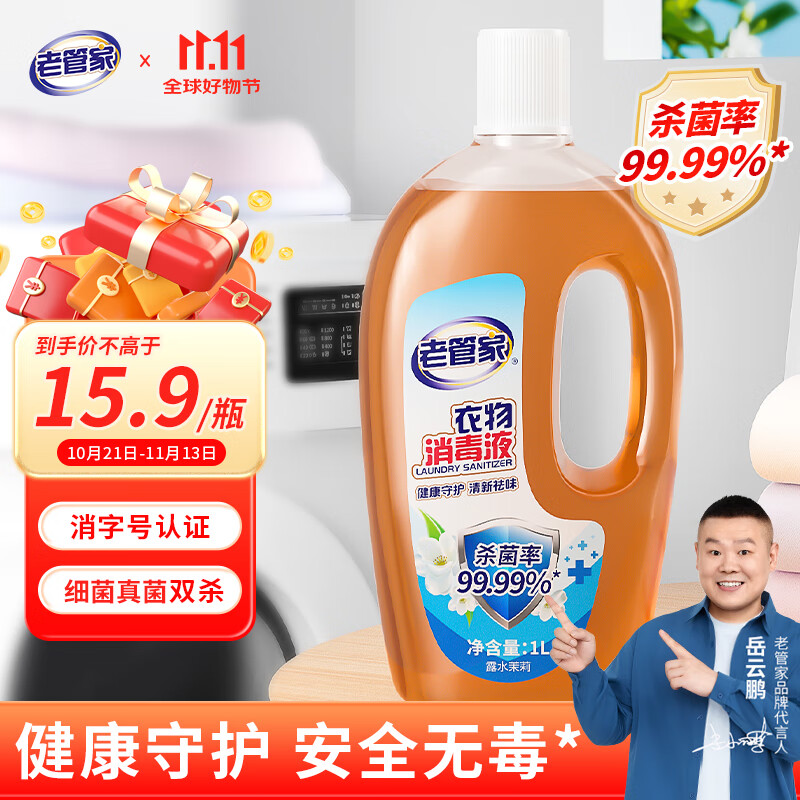 老管家衣物消毒液内衣裤袜子衣服除菌液杀菌99.99% 1L 1瓶