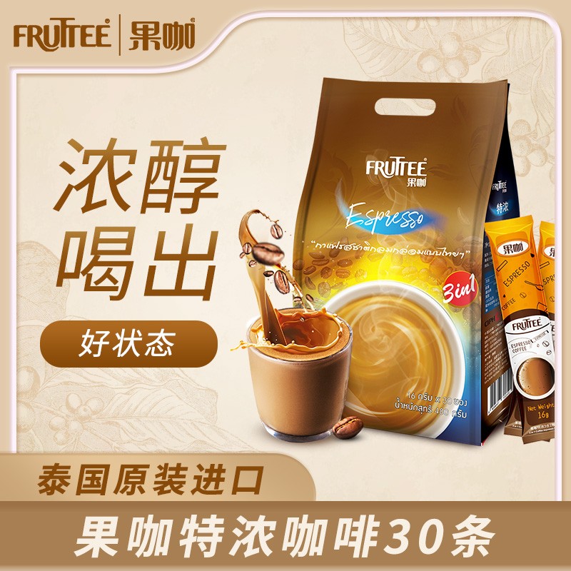 果咖(FRUTTEE)泰国原装进口速溶咖啡粉丝滑醇厚三合一特浓咖啡 低糖速溶咖啡 果咖正常糖特浓咖啡(16g*30条)
