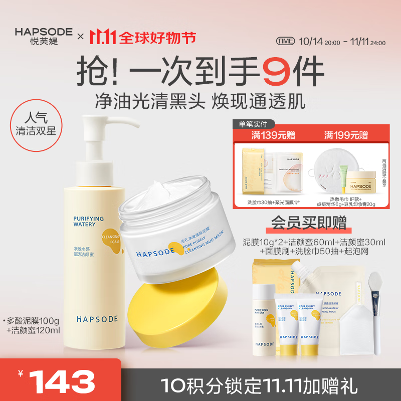 悦芙媞洁颜蜜氨基酸洁面洗面奶深度清洁洗卸二合一清爽细腻毛孔去油男女 【清洁cp】泥膜+洁颜蜜