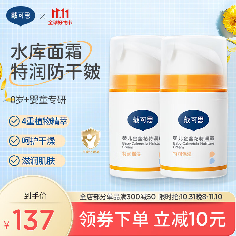 戴·可·思(Dexter)金盏花面霜婴儿秋冬特润面霜宝宝擦脸面霜滋润保湿 秋冬特润霜50g两瓶装