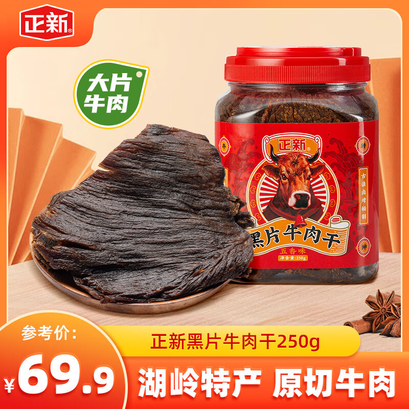 正新 黑片牛肉干零食大片手撕风干黄牛肉正宗温州瑞安湖岭特产小吃 五香味1罐+沙嗲味1罐