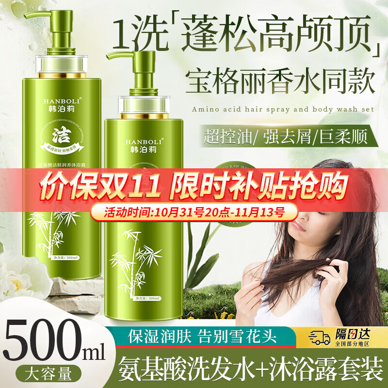 HANBOLI氨基酸洗发水控油去屑洗发露蓬松持久留香沐浴露学生家庭洗护套装 氨基酸洗发水+氨基酸沐浴露