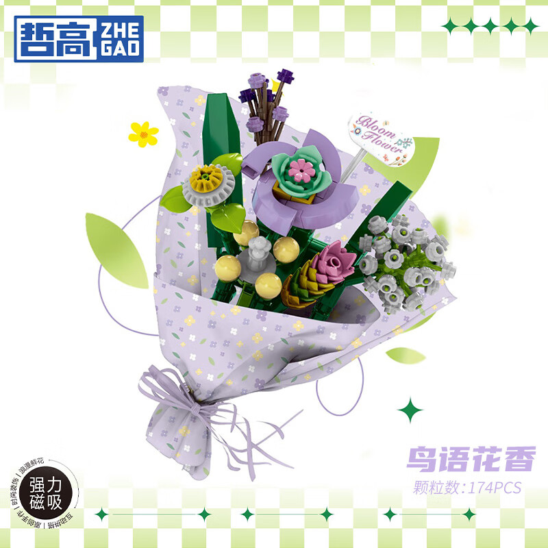 哲高积木拼装花束趣味磁吸可爱冰箱贴创意装饰品男女孩生日礼物 鸟语花香