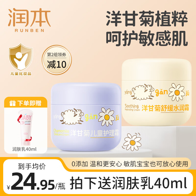 润本(RUNBEN)儿童面霜宝宝霜滋润保湿秋冬季防皴补水新生婴儿擦脸霜护肤润肤乳 护理霜 50g 1瓶 +水润霜50g1瓶