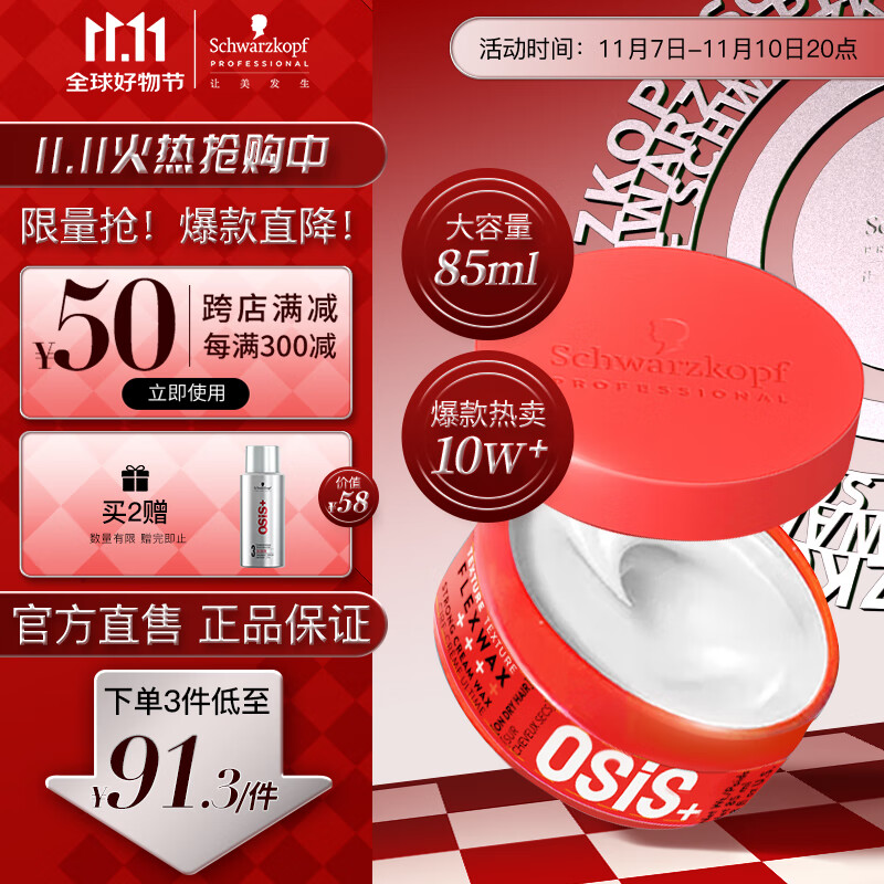 施华蔻专业OSIS 质感随意发蜡85ml 特强定型 发蜡发泥男士碎发整理神器