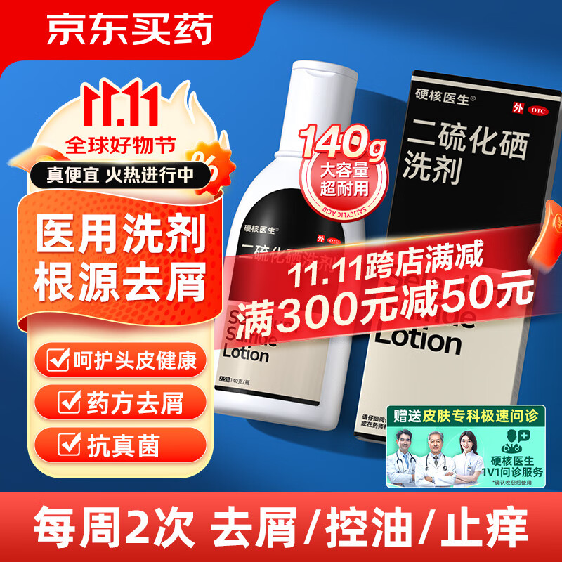 硬核医生 二硫化硒洗剂2.5%*140g 去屑洗发水控油止痒 用于去头屑头皮部脂溢性皮炎花斑癣汗斑 医药非酮康唑