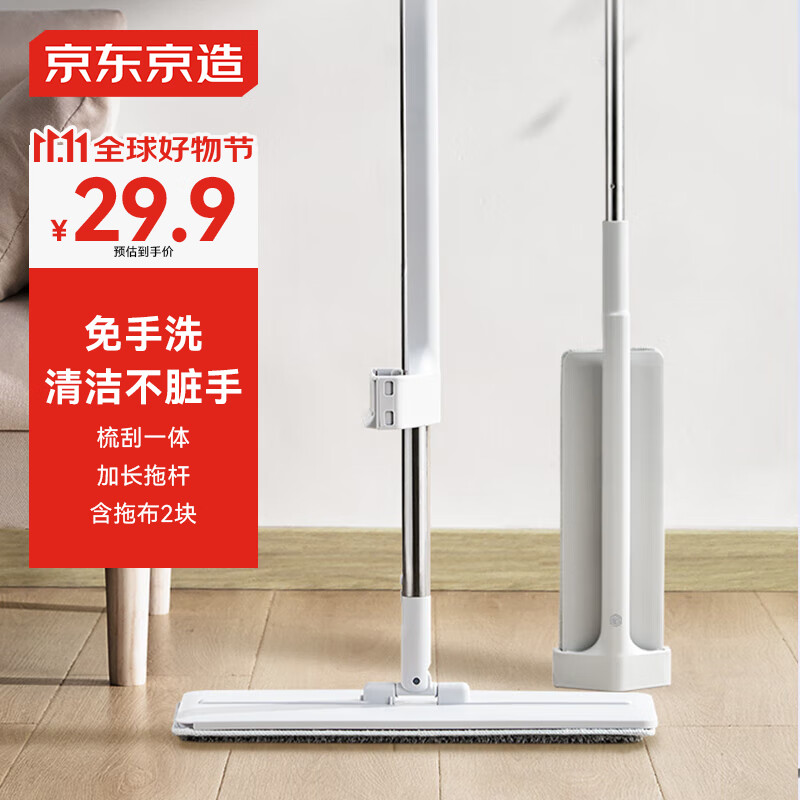 京东京造拖把免手洗平板拖把家用一拖净拖地神器懒人拖把擦地墩布2块拖布