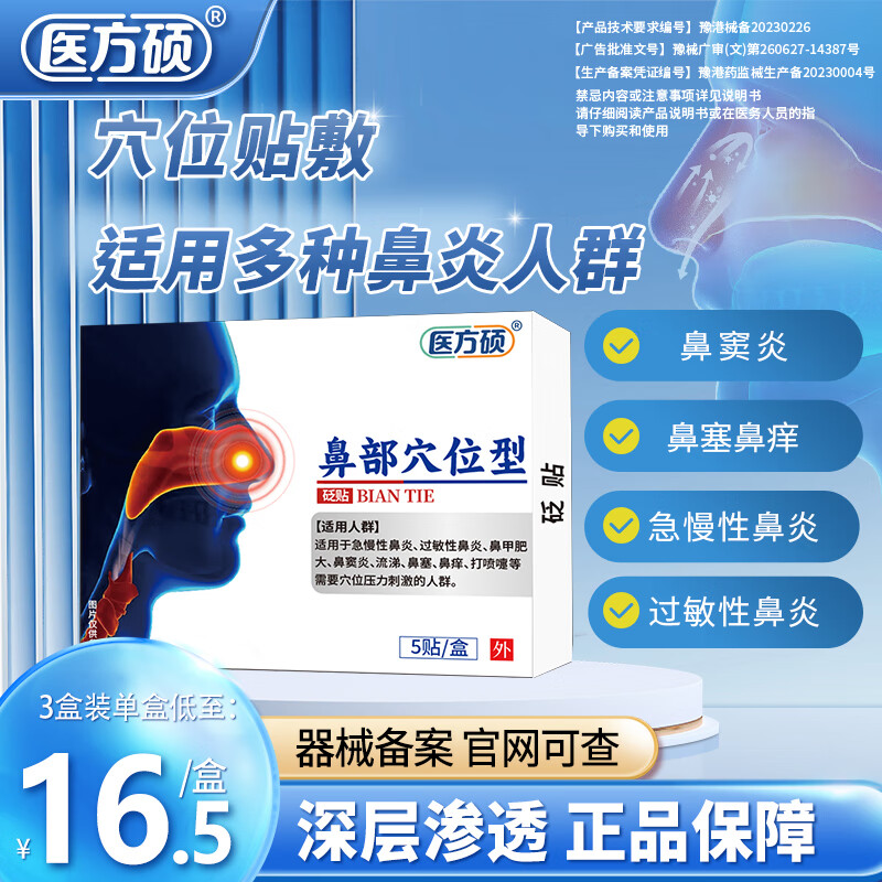 医方硕鼻部穴位贴砭贴急慢性鼻炎过敏性鼻炎鼻甲肥大鼻窦炎流涕鼻塞鼻痒打喷嚏 三盒周期装【98%顾客选择】