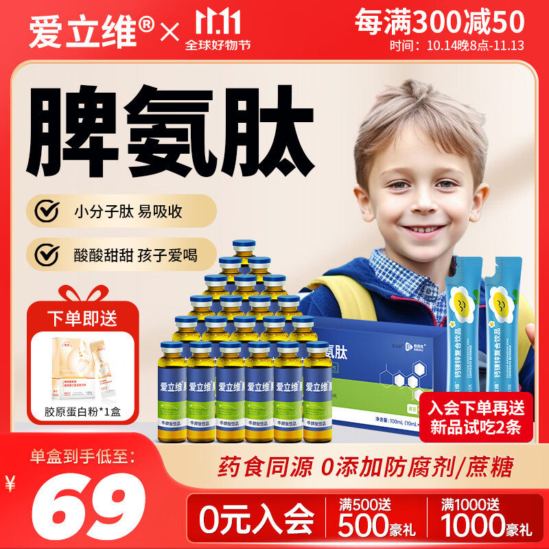 爱立维脾氨肽口服液小分子多肽儿童成人牛脾肽饮品搭配脾氨肽冻干粉溶液 【基础装】1盒10支【10ML/支】
