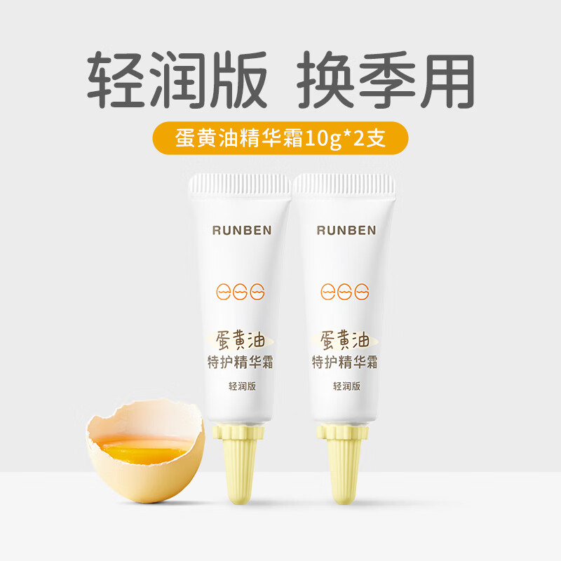 润本(RUNBEN)儿童面霜婴儿蛋黄油面霜秋冬保湿滋润补水新生儿护肤宝宝霜润肤乳 轻润霜 10g 2支