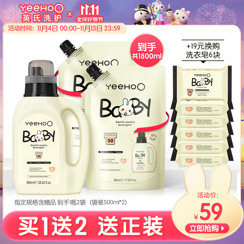 英氏婴儿洗衣液宝宝专用洗衣皂液儿童内裤洗液天然酵素去污柔护洗衣液 柔护洗衣液800ml*1+500ml*2