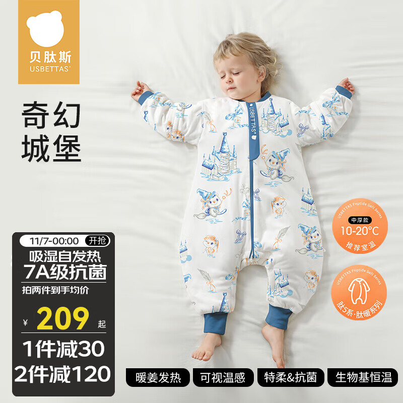 贝肽斯【肽暖】宝宝睡袋春秋冬款分腿婴儿恒温防踢被儿童四季保暖 恒温×天竹【秋冬中厚 室温10-20℃】奇幻城堡 S码【适合身高60-85cm】建议年龄6-18个月
