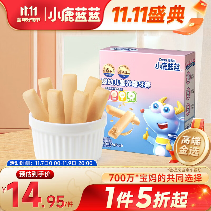 小鹿蓝蓝婴幼儿磨牙棒原味64g宝宝零食 营养辅食 磨牙棒(6+~36个月适用)