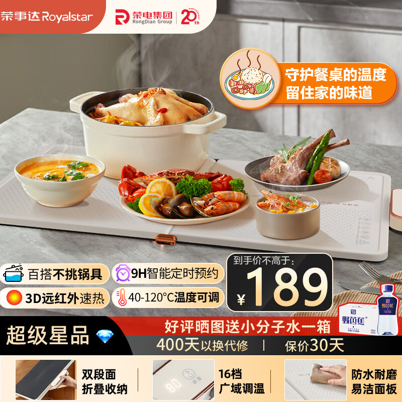 荣事达(Royalstar)暖菜板饭菜保温板折叠多功能家用方形 加热暖菜板垫 烘干发酵解冻快速升温多功能加热板RS-HR360C
