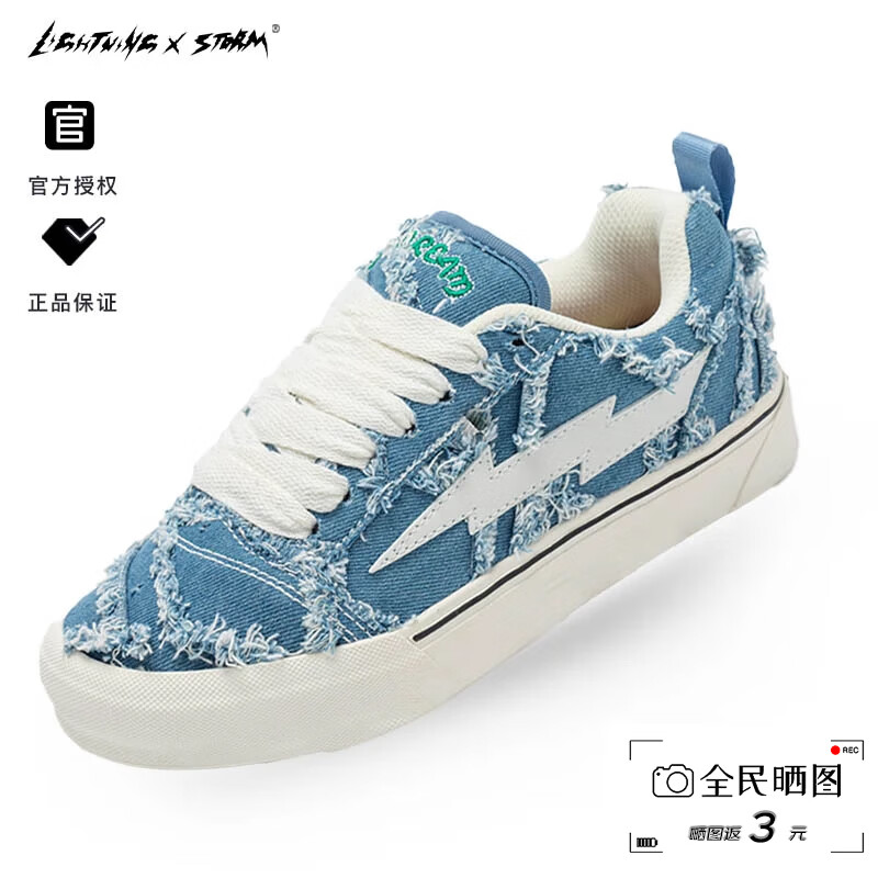 LIGHTNING X STORM毕加索画作联名闪电鞋风暴2024新款秋季运动跑鞋子休闲帆布板鞋 牛仔蓝 40