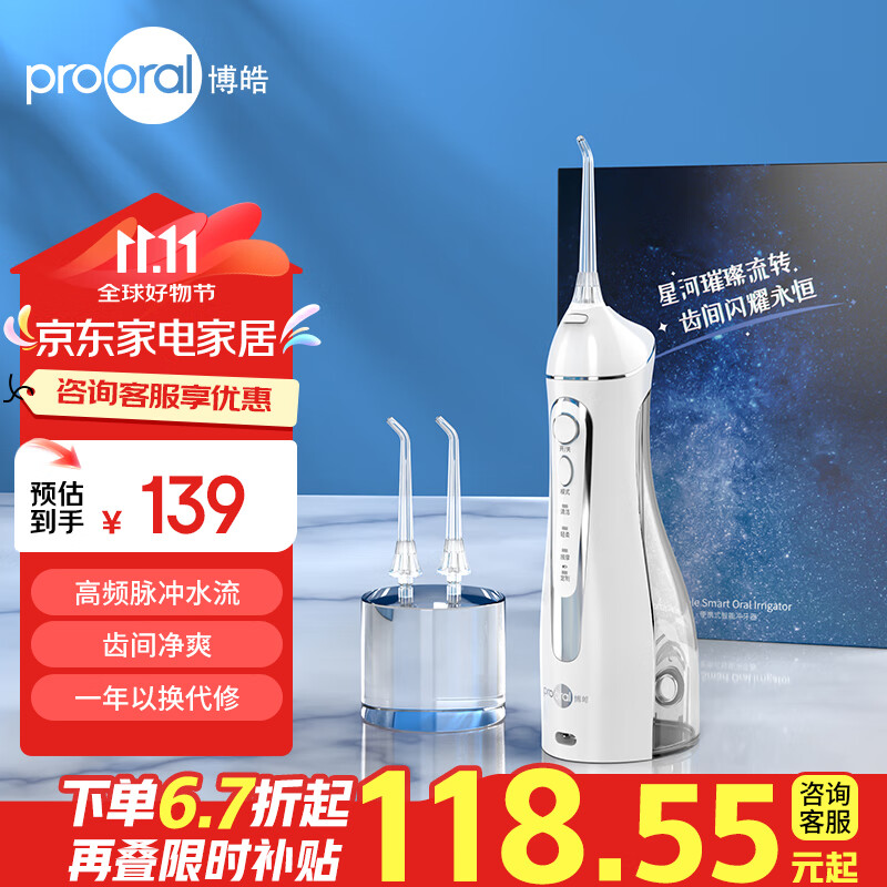博皓(prooral)冲牙器便携式洗牙器家用电动牙齿冲洗器水牙线声波洁牙器 白色