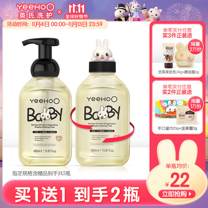 英氏奶瓶清洗剂洗奶瓶刷婴儿奶瓶奶嘴果蔬玩具洗洁精酵素清洁泡沫b 【到手2瓶】奶瓶清洗剂450ml