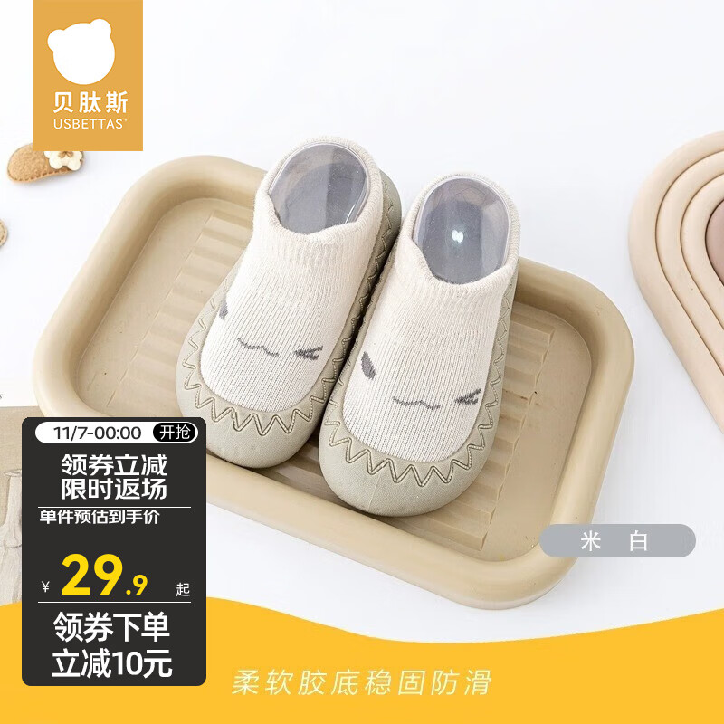 贝肽斯宝宝学步鞋春秋软底室内男女宝宝鞋子防滑地板鞋婴幼儿鞋子精选 米白 24码【建议脚长13.8-14.2cm】