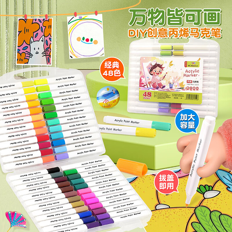 纽奇 48色单头丙烯马克笔速干涂鸦DIY绘画笔易握粗三角水彩笔儿童玩具 48色-丙烯马克笔