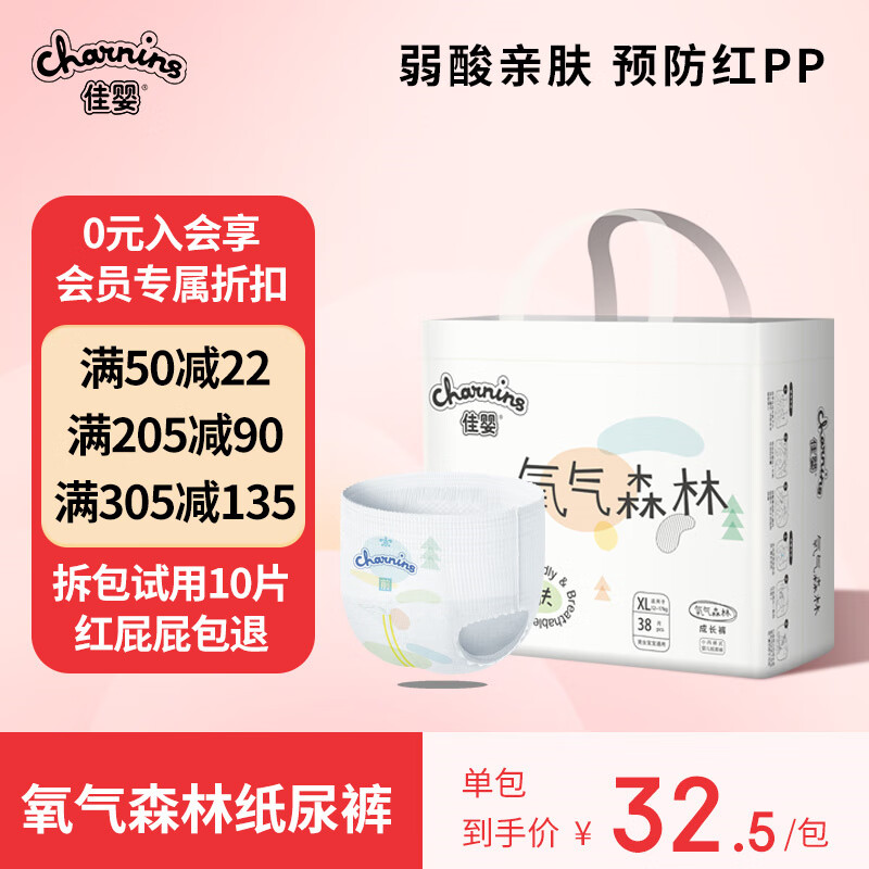 佳婴氧气森林拉拉裤超薄婴儿尿不湿男女宝宝透气弱酸亲肤成长裤 XXL码36片半包臀拉拉裤