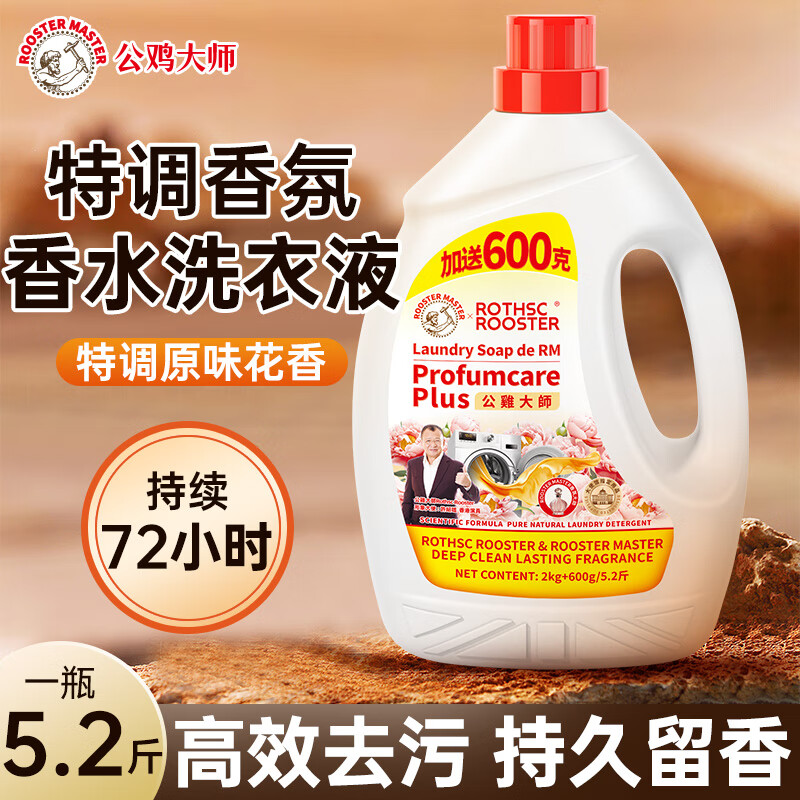 公鸡大师洗衣液强效去污整箱批发持久留香洗衣皂液除螨除菌2.6kg*1 皂香【加送600克】 2.6kg 1瓶