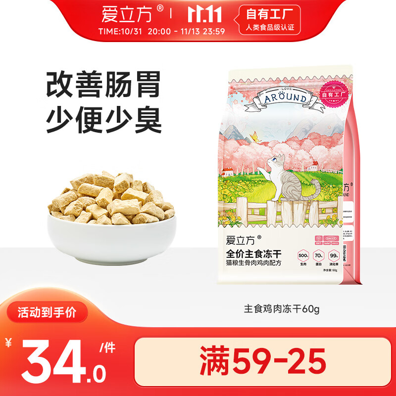 爱立方爱立方海洋盛宴冻干生骨肉 冻干猫零食营养增肥猫咪冻干猫粮小包 鸡肉冻干60g
