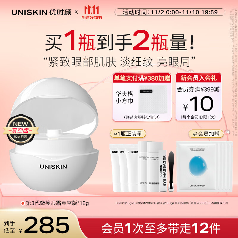 优时颜(UNISKIN)第3代微笑眼霜18g真空版淡纹紧致抗皱提亮眼周送女友生日礼物
