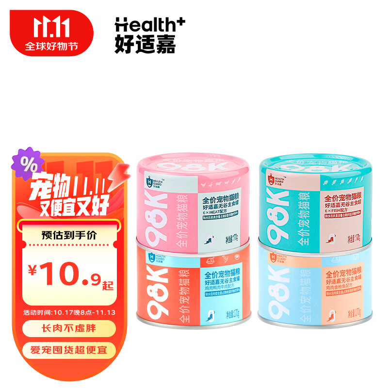 好适嘉猫罐头 98K低脂全价主食罐170g 低脂肪量高肉含量0内脏 【实惠】混合口味 6罐共1020g