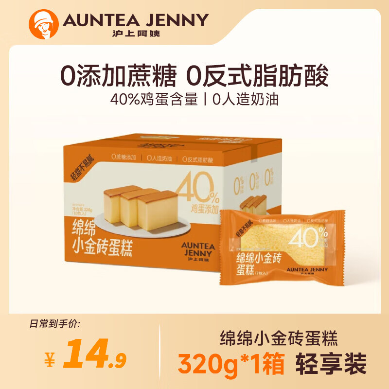 沪上阿姨绵绵小金砖西式糕点原味面包小点心早餐代餐休闲零食整箱装 小金砖蛋糕(32g*10个)320g