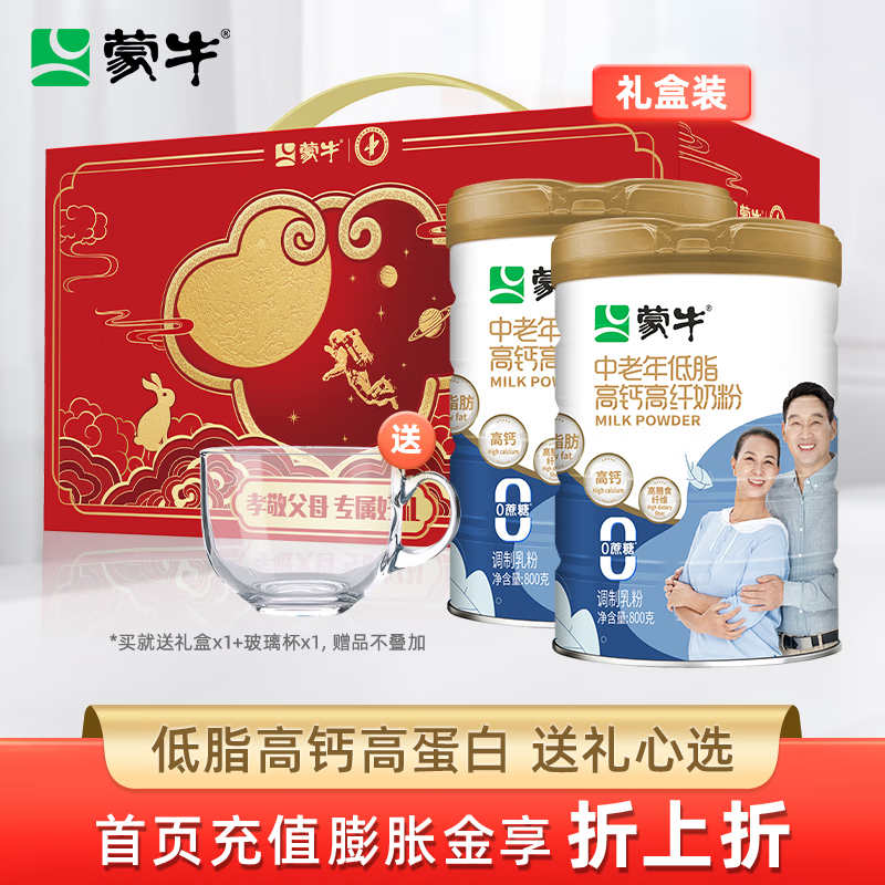 蒙牛 中老年低脂高钙奶粉800g/罐轻盈骨力配方奶粉送礼礼盒送爸妈长辈 2罐【礼盒装】