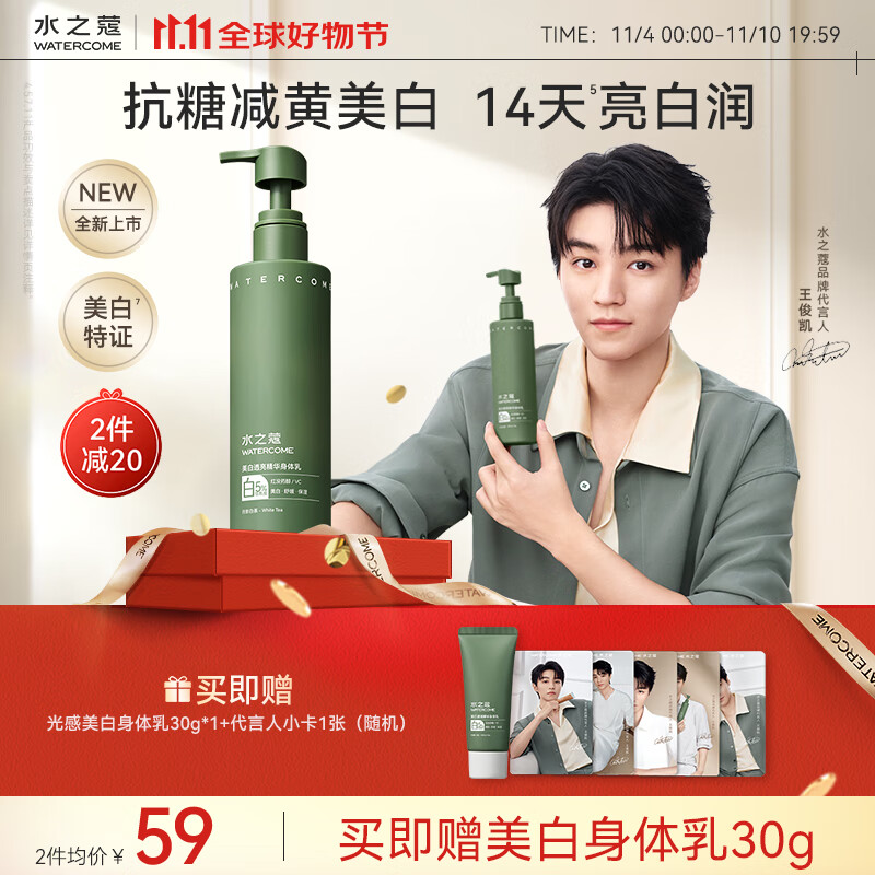 水之蔻烟酰胺美白身体乳220g 保湿滋润改善干燥 白茶香润肤乳 秋冬