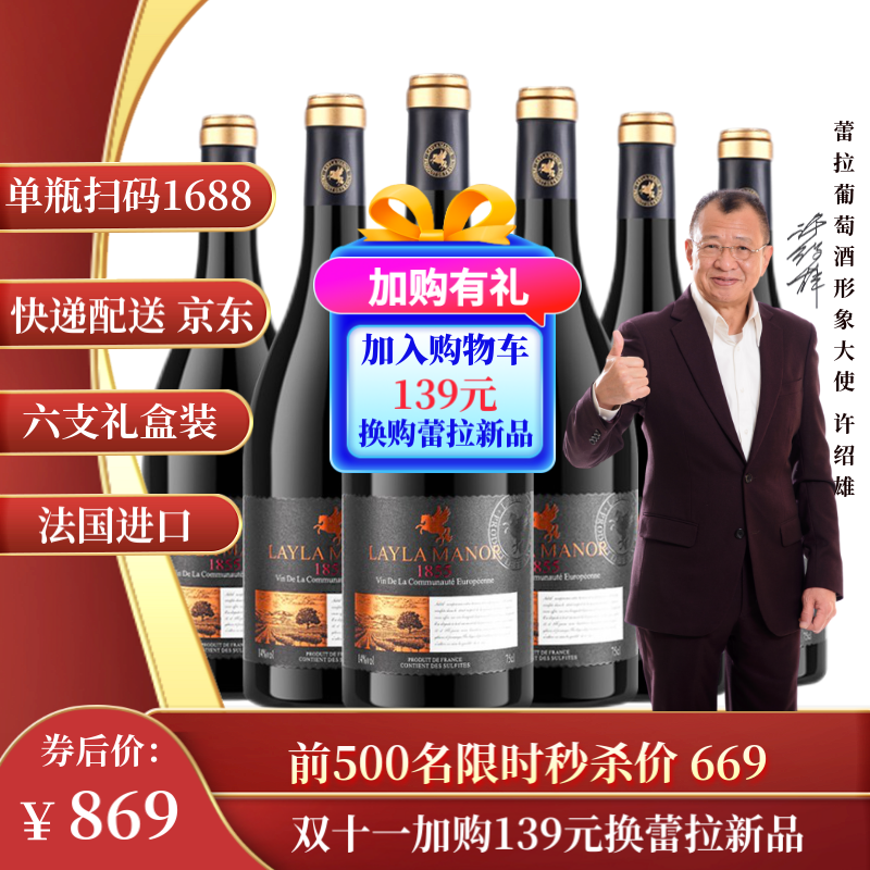 蕾拉【法国LAYLA MANOR】进口红酒14度干红葡萄酒 礼盒750ml整箱6支装
