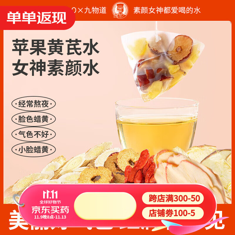九物道苹果黄芪水 素颜水女生调理养生补气血红枣黄芪苹果枸杞子 苹果黄芪水两袋(7g*40包)