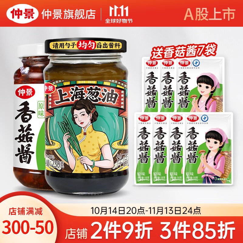 仲景 香菇酱上海葱油成都红油组合 葱油拌面酱油泼辣子拌饭夹馍调味酱 原味香菇酱230g+原味葱油230g