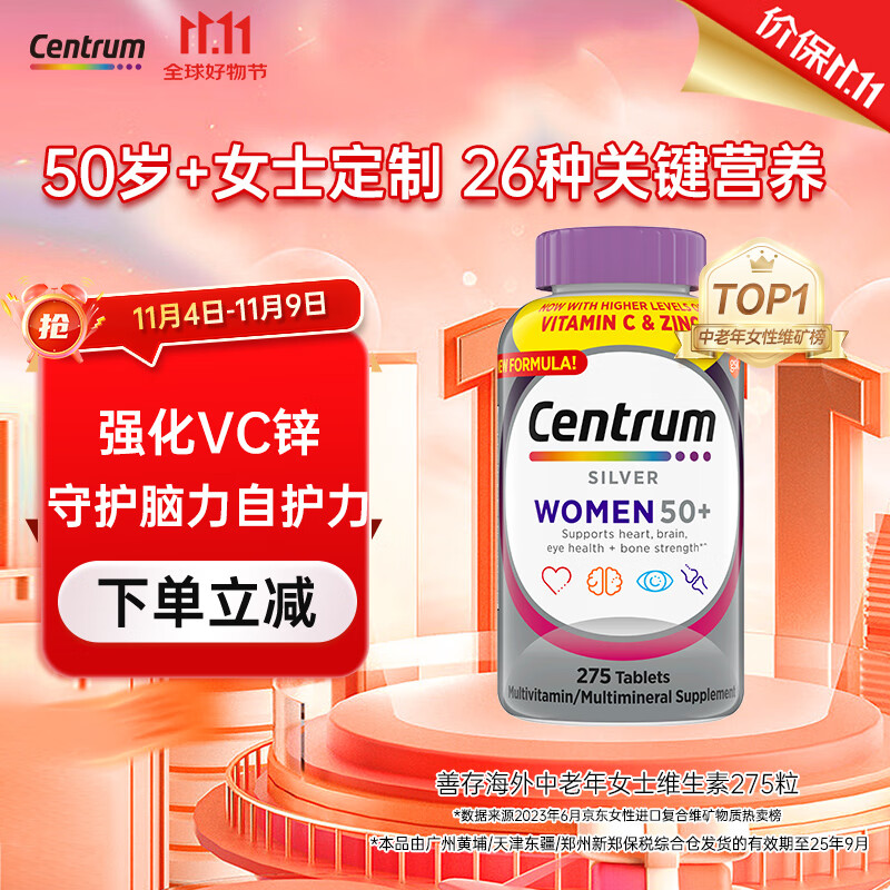 善存(Centrum) 中老年女性复合维生素275粒 50+女性补充维生素C、B等多维矿物质