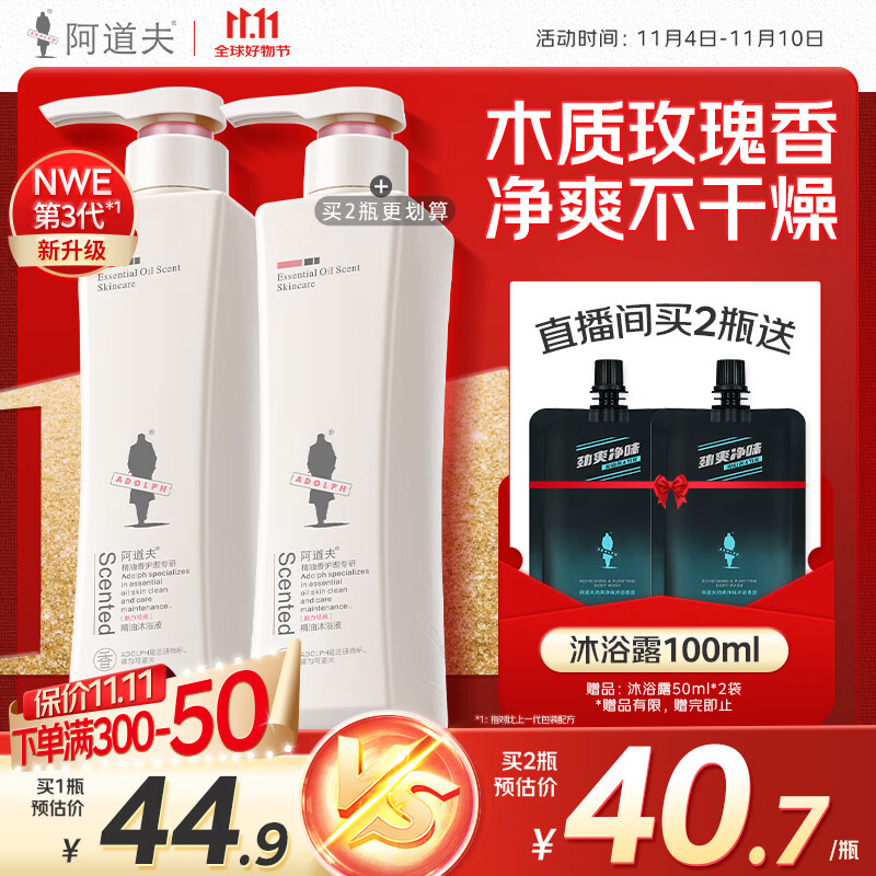 阿道夫精油沐浴露420ml 香氛沐浴液 嫩滑滋润沐浴乳 经典留香