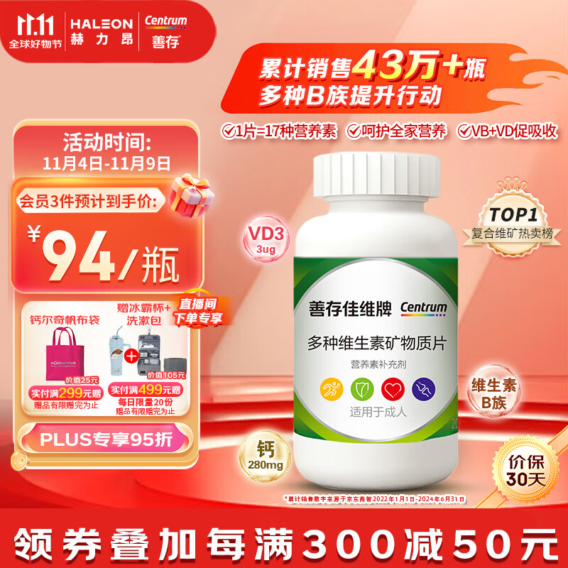 善存佳维复合维生素多维片维c维生素e维生素b族钙镁D3男女全家120片