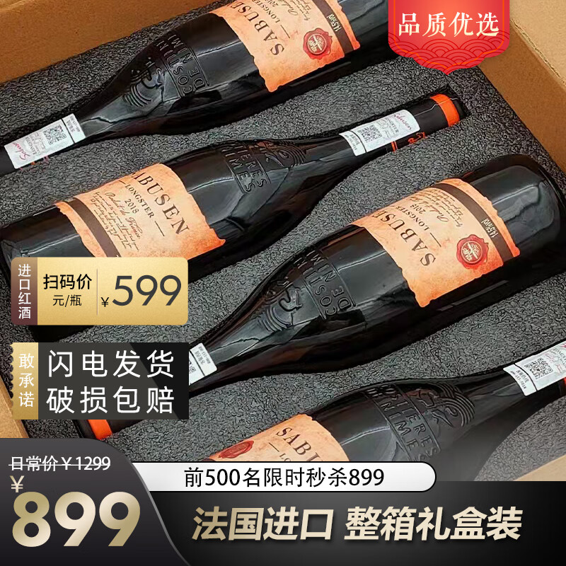 萨布森红酒整箱法国进口酒庄红酒干红葡萄酒礼盒装送礼红酒4瓶法国原酒 1箱