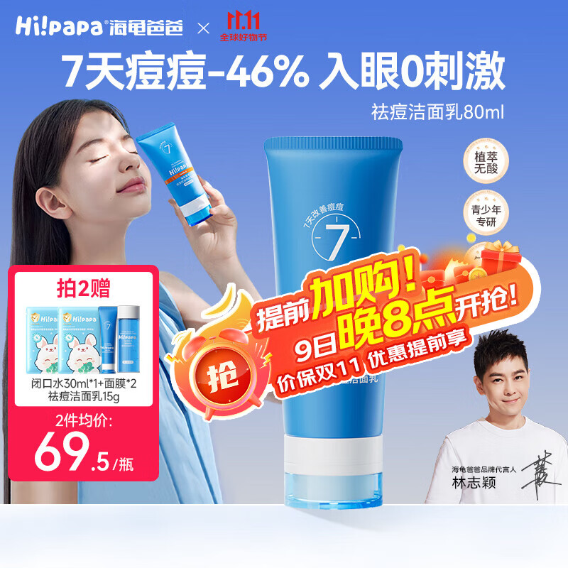 Hi!papa海龟爸爸青少年洗面奶洁面男孩控油祛痘护青少年女孩护肤品80g