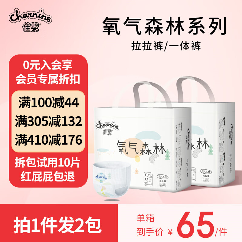 佳婴氧气森林拉拉裤超薄婴儿尿不湿男女宝宝透气弱酸亲肤成长裤 XXL码68片全包臀拉拉裤
