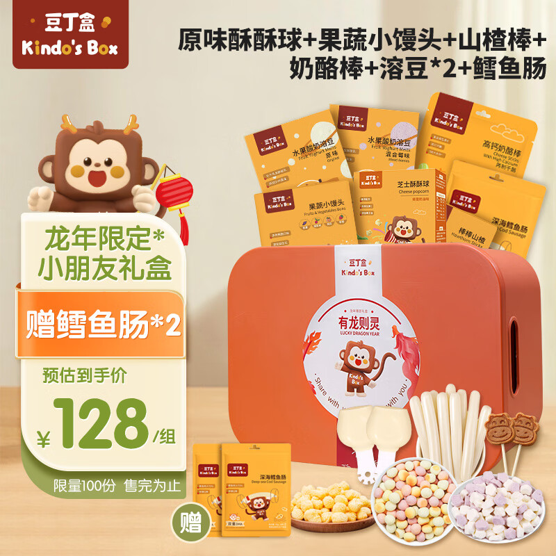 豆丁盒宝宝零食礼盒7件套 婴幼儿/儿童零食盒大礼包手伴 米饼泡芙磨牙棒 大宝贝礼盒-7件套