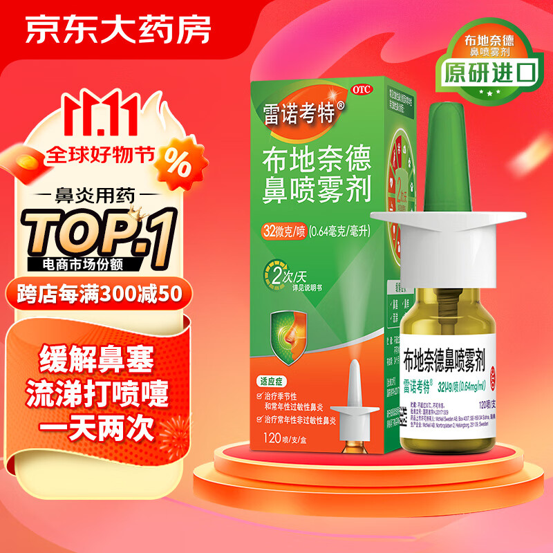 雷诺考特布地奈德鼻喷雾剂32μg*120喷鼻炎喷剂鼻炎药治疗过敏性鼻炎鼻塞流鼻涕鼻炎喷雾布地奈德混悬液雾化