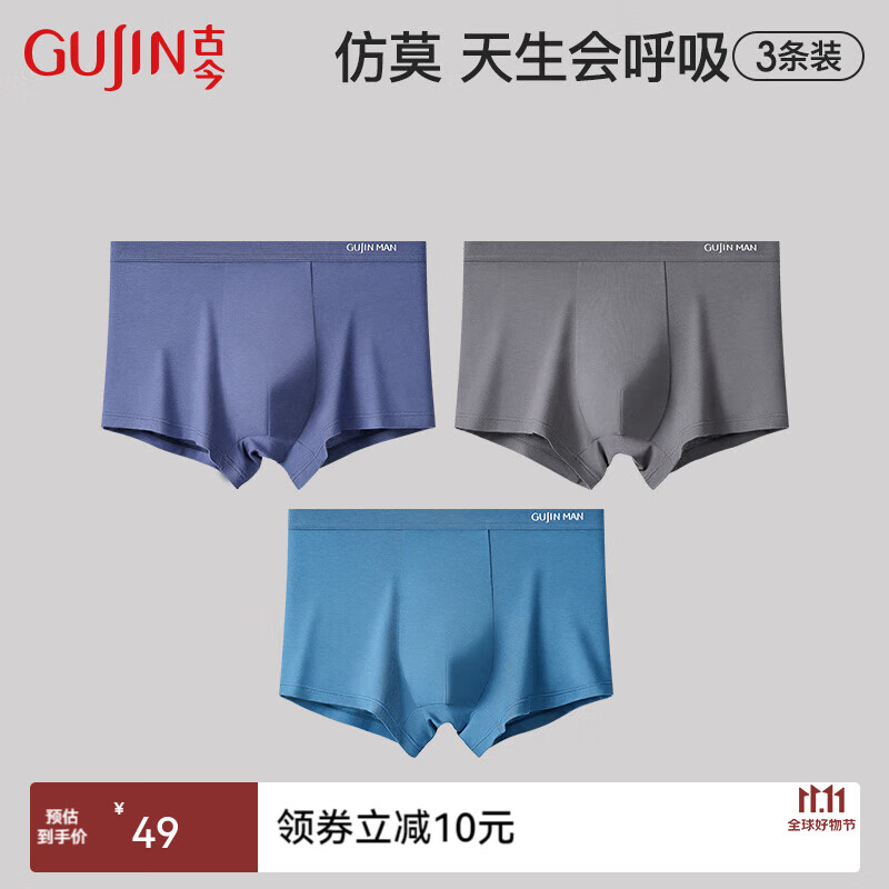 古今男士内裤纯色大码仿莫柔软顺滑男生平角四角短裤送男生 紫蓝+深灰+深蓝 【 3条 XL/175