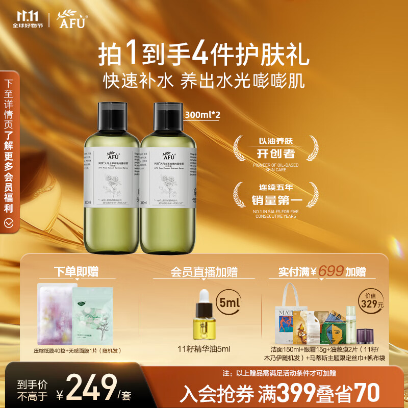 阿芙(AFU) 大马士革玫瑰纯露爽肤水 补水保湿提亮湿敷护肤品送礼物 600ml