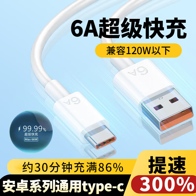勒盛type-c数据线快充线6A超级闪充电线H120W/100W/88W/66W安卓6A适用手机华为mate荣耀小米车载充电线 1条6A超级快充线【1.5米】加粗铜芯提速300%