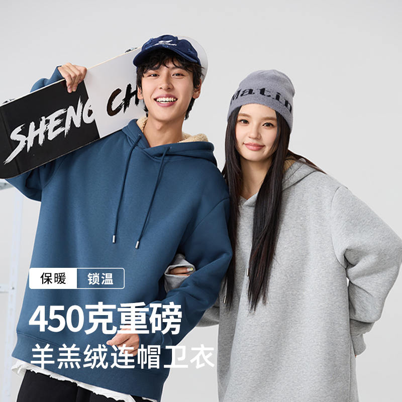 【清仓-情侣套装合辑】森马卫衣女小众图案加绒冬撞色圆领打底衫