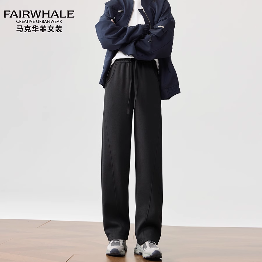 马克华菲香蕉阔腿裤女2024秋冬新款休闲美式宽松加绒卫裤运动裤女