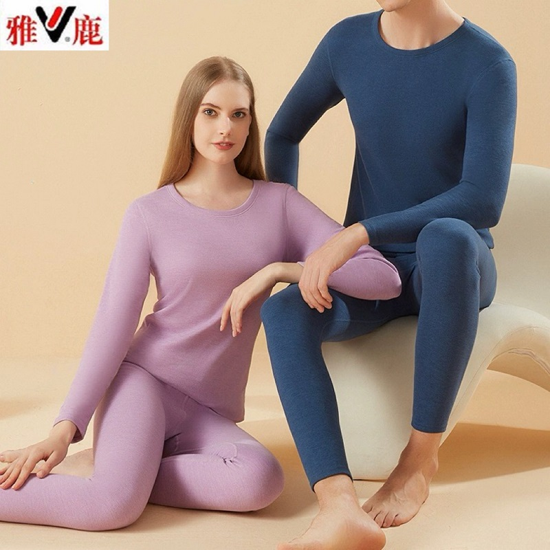 yaloo/雅鹿2024新款雅鹿冬季黑金羊绒桑蚕丝男女士秋衣裤套装b